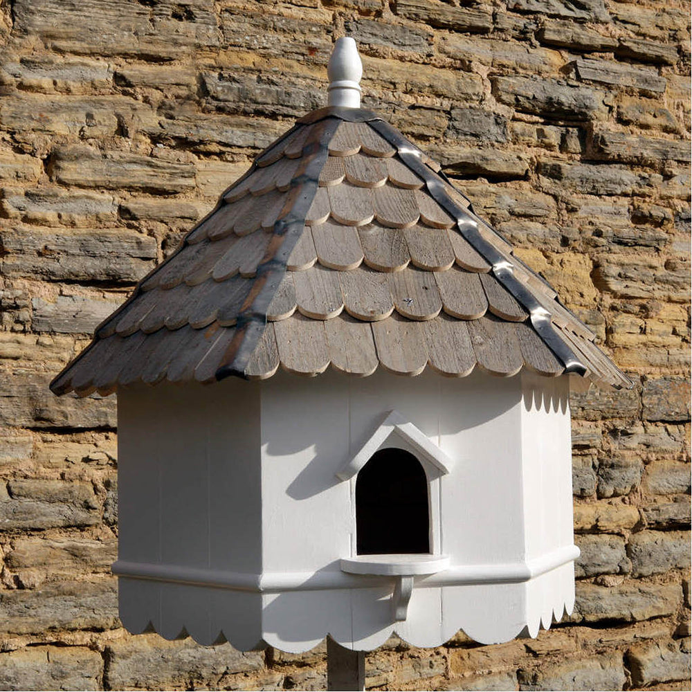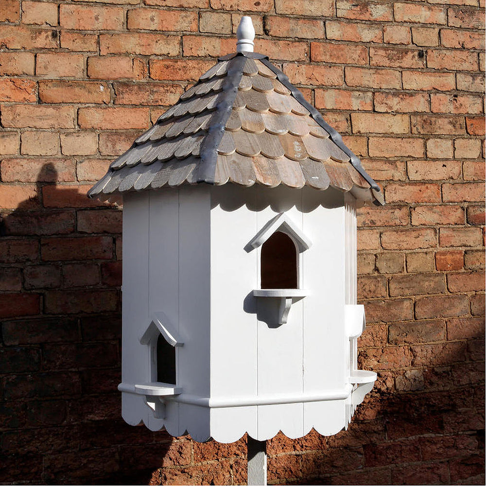 A dove cote is an enclosed structure that provides nesting sites for doves, pigeons or turtledoves. Traditionally, these structures were built on manor houses or large estates, but there are many modern designs of dovecote nest boxes available today that can be placed in almost any sized garden.